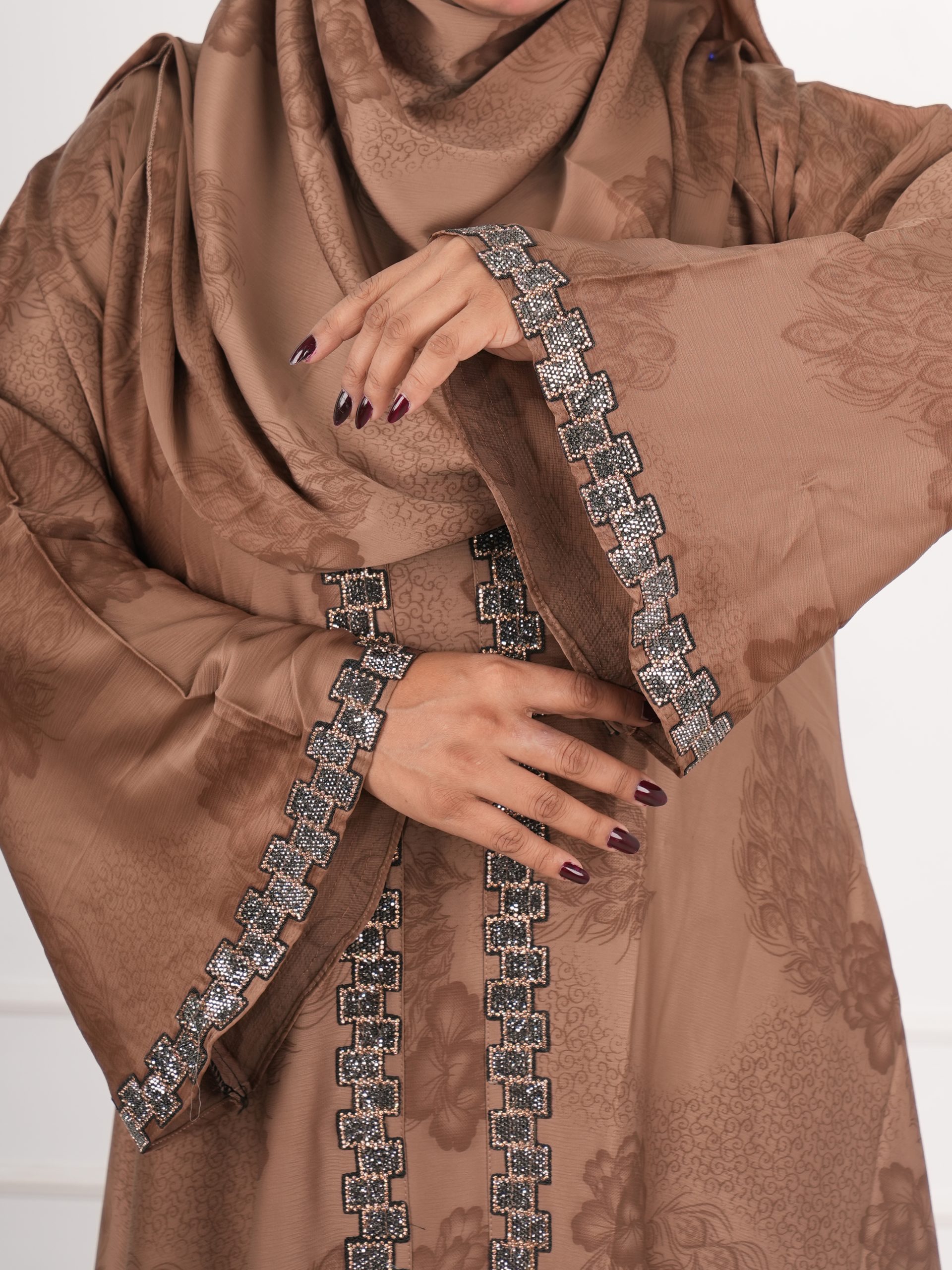 Matching Hijab: সাথে পাচ্ছেন একই স্টোনের কাজ করা ম্যাচিং হিজাব।