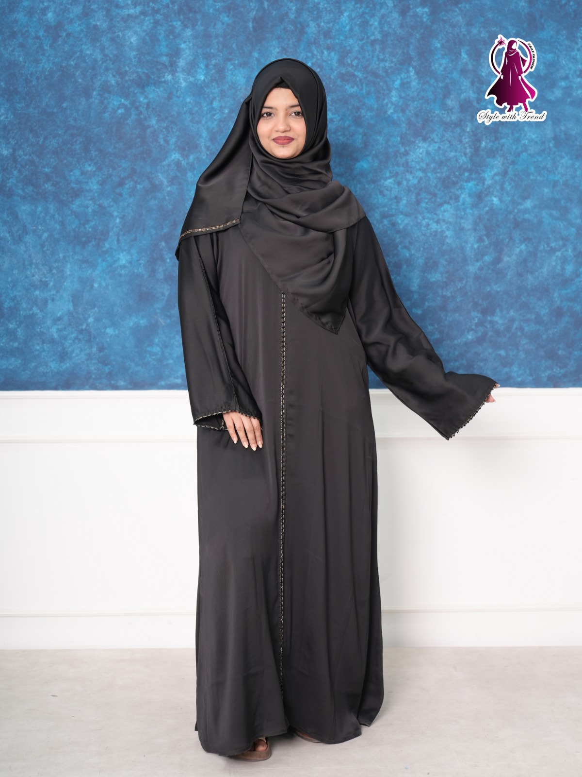 যারা সিম্পল কিন্তু গর্জিয়াস ডিজাইন পছন্দ করেন, তাদের জন্য এই স্টোন ওয়ার্ক বোরকাটি সেরা অপশন। এর ফেব্রিক বেশ লাক্সারি এবং কালারগুলো খুবই ট্রেন্ডি। পার্টি বা যেকোনো বিশেষ অনুষ্ঠানের জন্য এটি আপনাকে দেবে একটি কনফিডেন্ট এবং ডিসেন্ট লুক।